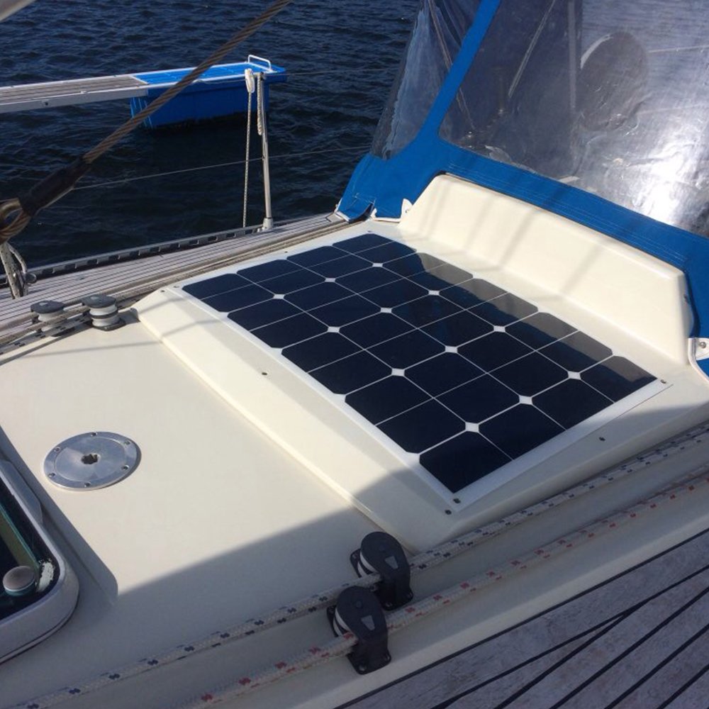 Product Description Made of monocrystalline silicon substrate from a single large crystal. Semi-flexible solar panel is the alternative solar module – lighter, thinner. It charges your on-board 12V battery of your motorhome, caravan, boat or other vehicle automatically, silently and maintenance free. ,is much more flexible than comparable solar modules. Curved surfaces such as boat decks or caravan alcoves are easily mounted junction box, for additional protection. Boats/Sailboats, Yachts, Marine applications Motorhomes/RVs, Expedition Vehicles, Commercial Trucks/Trailers, Caravans/Popup Off-Grid and Remote Communication places