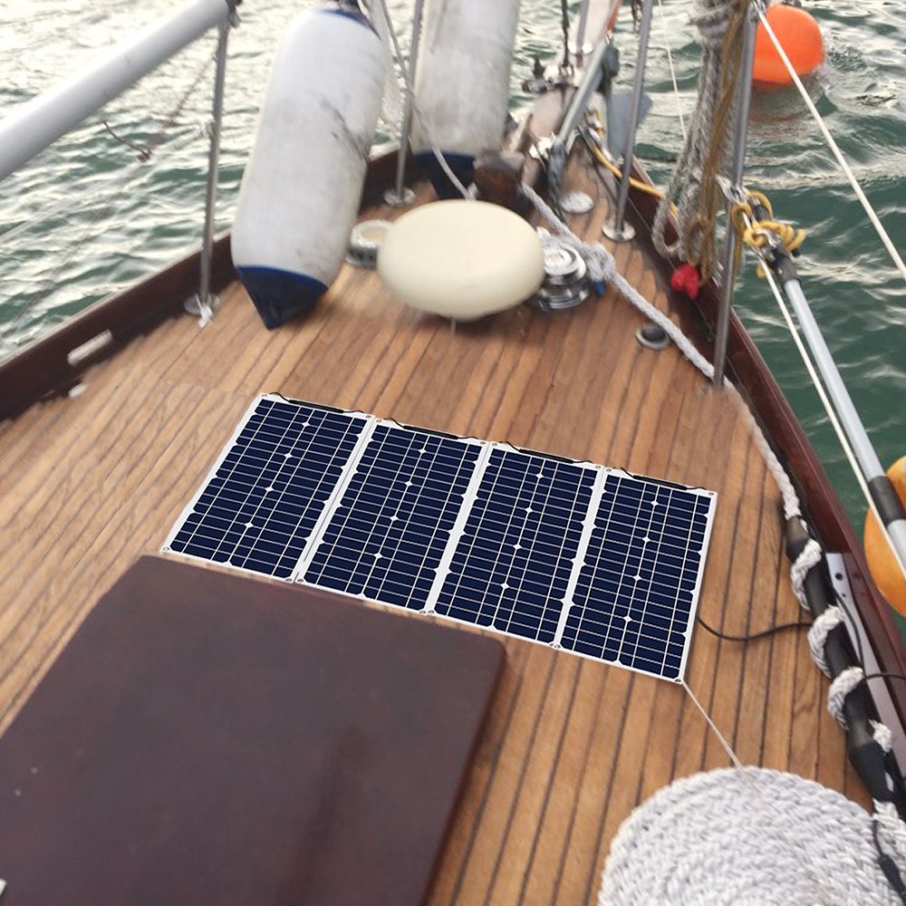 Product Description Made of monocrystalline silicon substrate from a single large crystal. Semi-flexible solar panel is the alternative solar module – lighter, thinner. It charges your on-board 12V battery of your motorhome, caravan, boat or other vehicle automatically, silently and maintenance free. ,is much more flexible than comparable solar modules. Curved surfaces such as boat decks or caravan alcoves are easily mounted junction box, for additional protection. Boats/Sailboats, Yachts, Marine applications Motorhomes/RVs, Expedition Vehicles, Commercial Trucks/Trailers, Caravans/Popup Off-Grid and Remote Communication places
